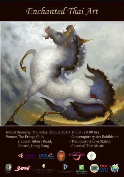 泰王國駐香港總領事館領事Athi Disatha-Amnarj先生邀請各國駐港領事、泰吉影業總裁藍凱莎玲女士、兩岸和平發展聯合總會蘇永安理事長以及香港影業協會 (MPIA) 洪祖星主席,參與於昨天舉辦,以 “令人入迷的泰國藝術” 為主題的文化活動之開幕儀式。活動將於2018年7月26 - 29日展出多位泰國藝術家的畫作以及欣賞傳統泰國音樂及美食,讓更多人可以接觸泰國的藝術文化。
